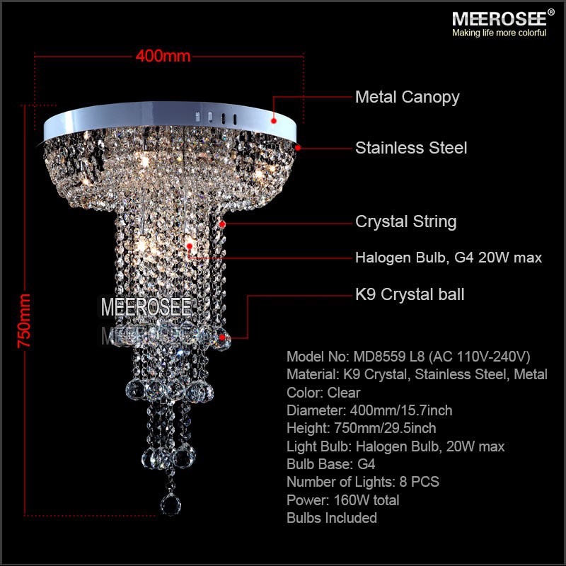 Home >> Ceiling light >> Crystal Ceiling Light >> meerosee >> Diameter 400mm Round Crystal Ceiling Light long lustres de cristal light fixture Modern Crystal lamp fitting home decoration MD8559