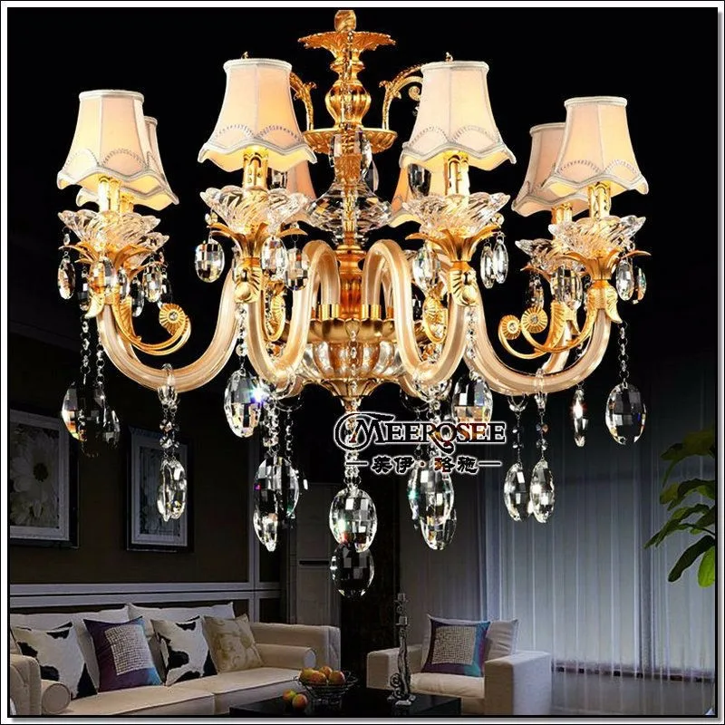 European Golden Crystal Chandelier Glass Arms Cristal Lustres for living room with Fabric Lampshades MD88006 - Category: Chandeliers
