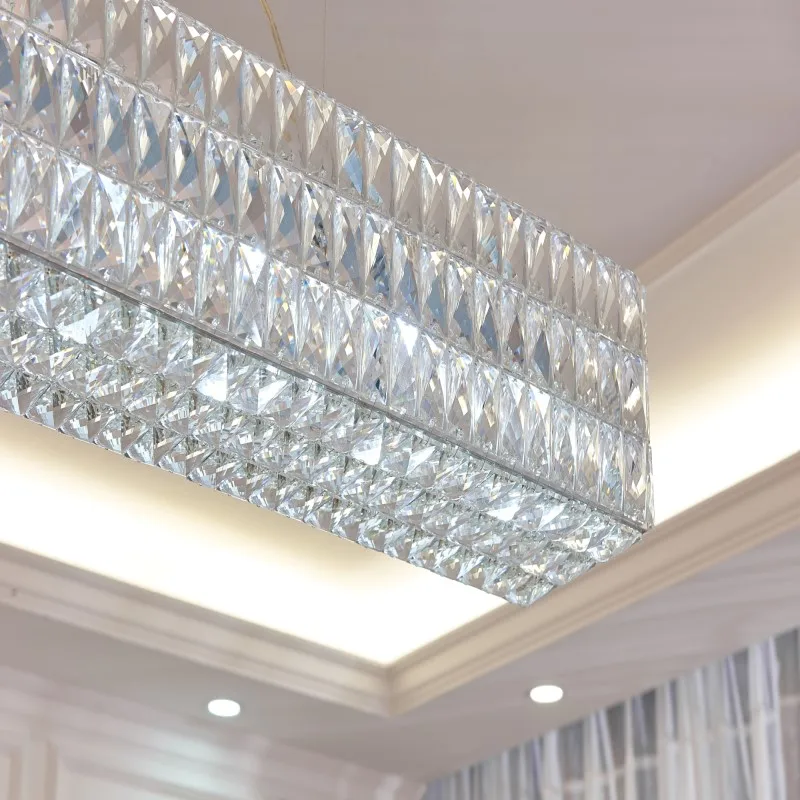 Luxurious Crystal Chandelier Light Fixture Rectangle Crystal Drop Lamparas for Living room Dining room Cafe Hotel Decoration
