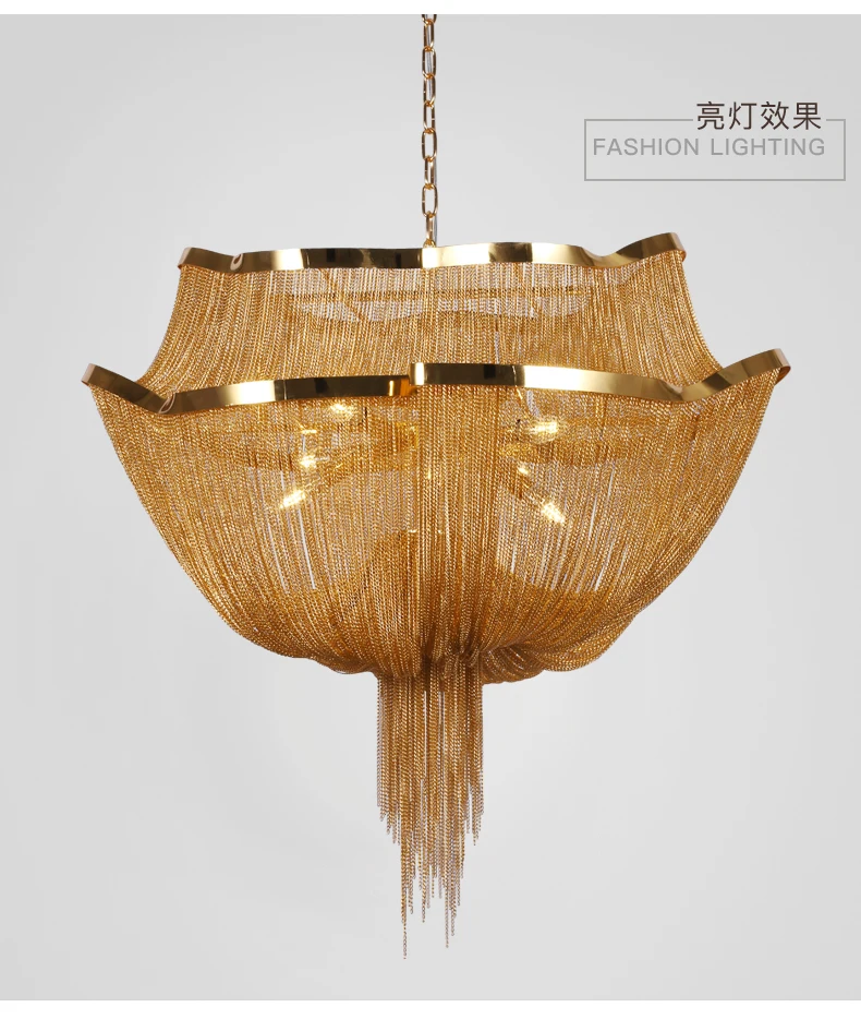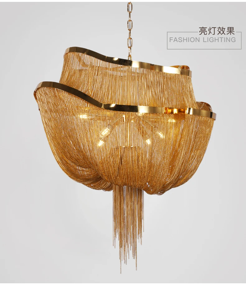 Creative Design Chandelier Light Italian Tassel Aluminum Chain Lustres Lamp Hanging Pendant Lighting for Living room Foyer